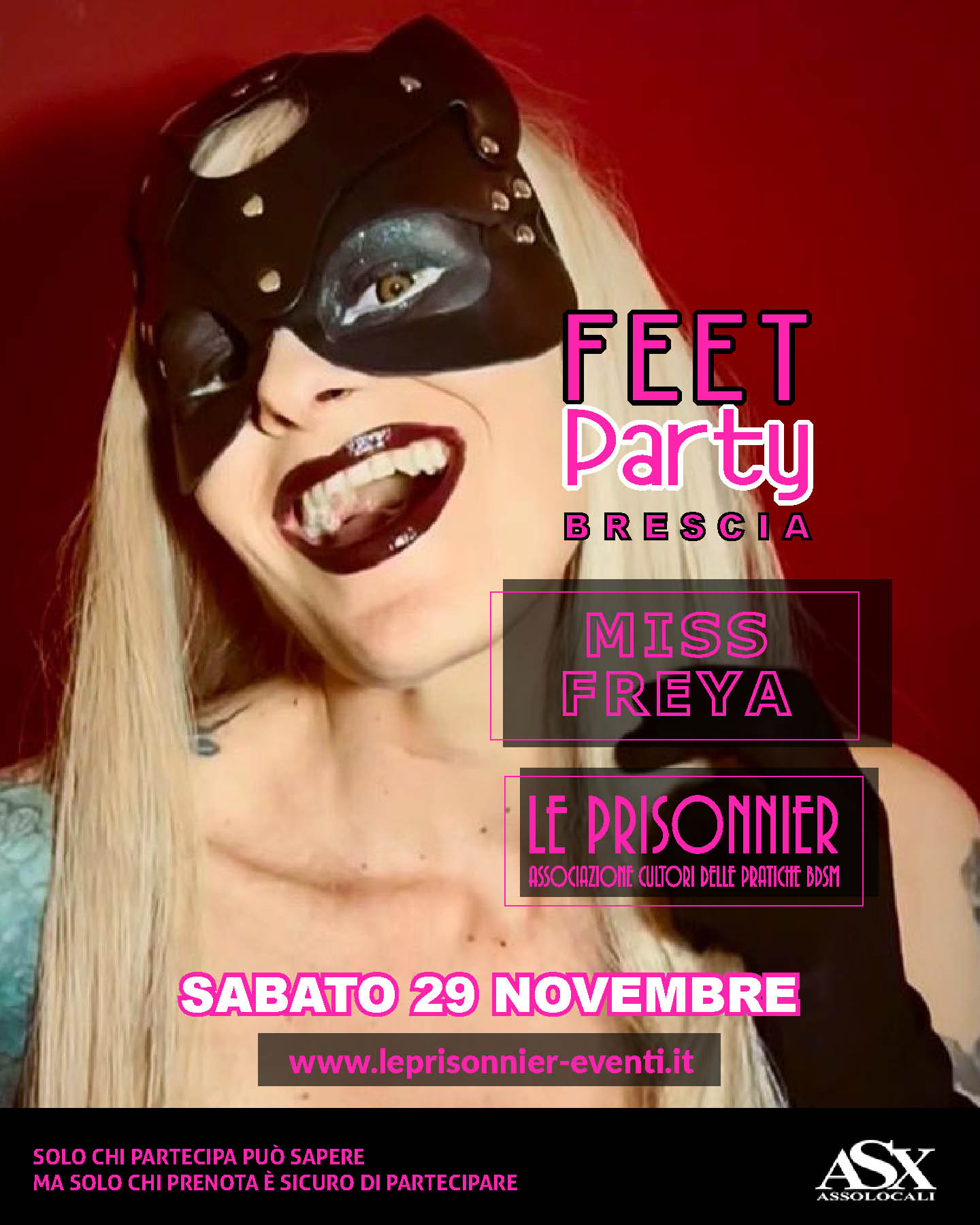 FEET PARTY Brescia è dedicato a tutti gli amanti dei piedi e celebra la bellezza di un piede nudo da poter ammirare o un tacco alto e longilineo da adorare e sfiorare. Gesti rituali di un piacere che si può provare solo stando ai piedi di qualcuno. Dal Trampling all’Adorazione, ogni pratica dedicata ai Piedi è ben accetta